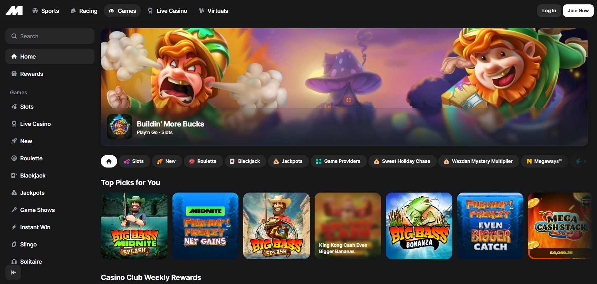 Pragmatic PlayWolf Gold, Sweet Bonanza, John Hunter SeriesOffers both slots and live casino content