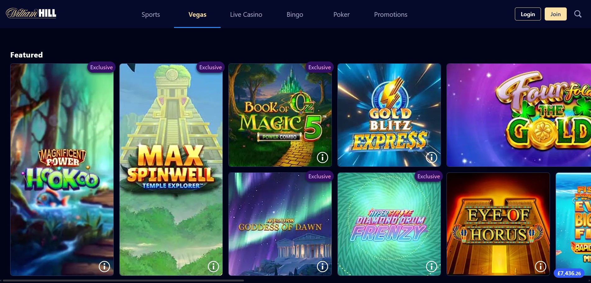 The casino offers over 1,500 slots, featuring classics like Rainbow Riches and Age of the Gods, alongside modern video slots and progressive jackpots. Table games include multiple versions of roulette, blackjack, baccarat, and poker, with betting limits suitable for both beginners and high rollers. The live dealer section stands out with professional hosts managing roulette, blackjack, and interactive gameshows such as Deal or No Deal Live. Video poker, scratchcards, and instant-win games complement the main casino library. Mobile play is smooth and user-friendly, and withdrawals are generally completed within 24–48 hours, reflecting William Hill’s strong reputation for reliability and trustworthiness.